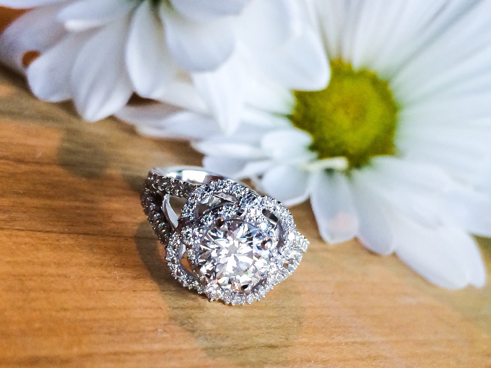 White Gold Custom Diamond Halo Ring